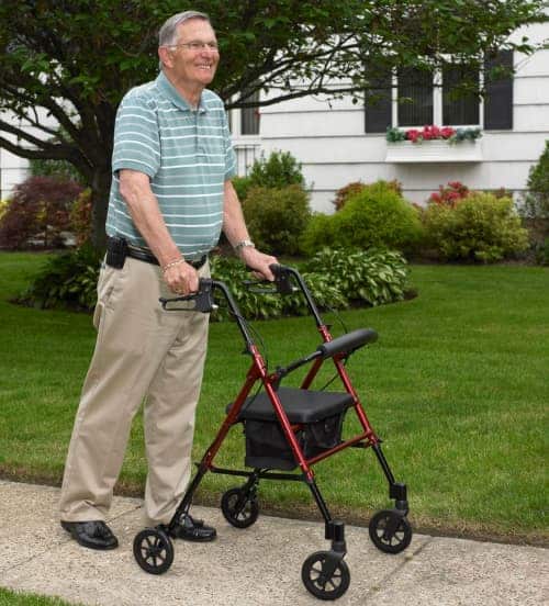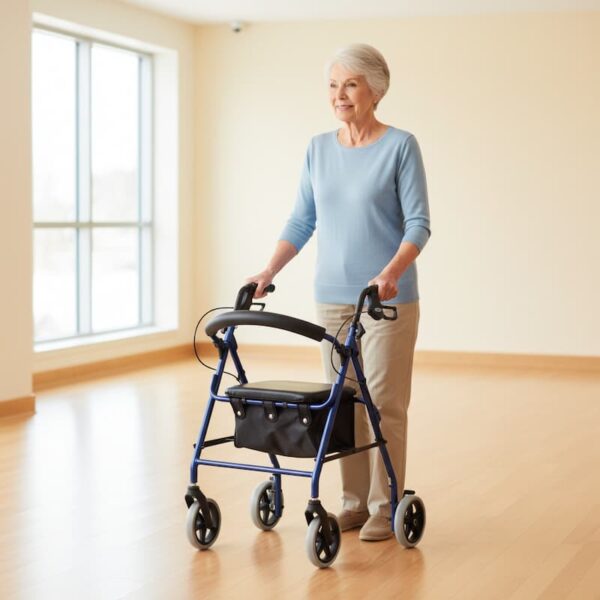 Este andador es regulable en altura y es ideal para personas con problemas de movilidad en los miembros inferiores y para personas con pérdida de fuerza ya que al tener ruedas, no se necesita levantar el caminador para avanzar. Es ideal para personas con movilidad en las manos para poder manajarlo y poder hacer uso del freno.