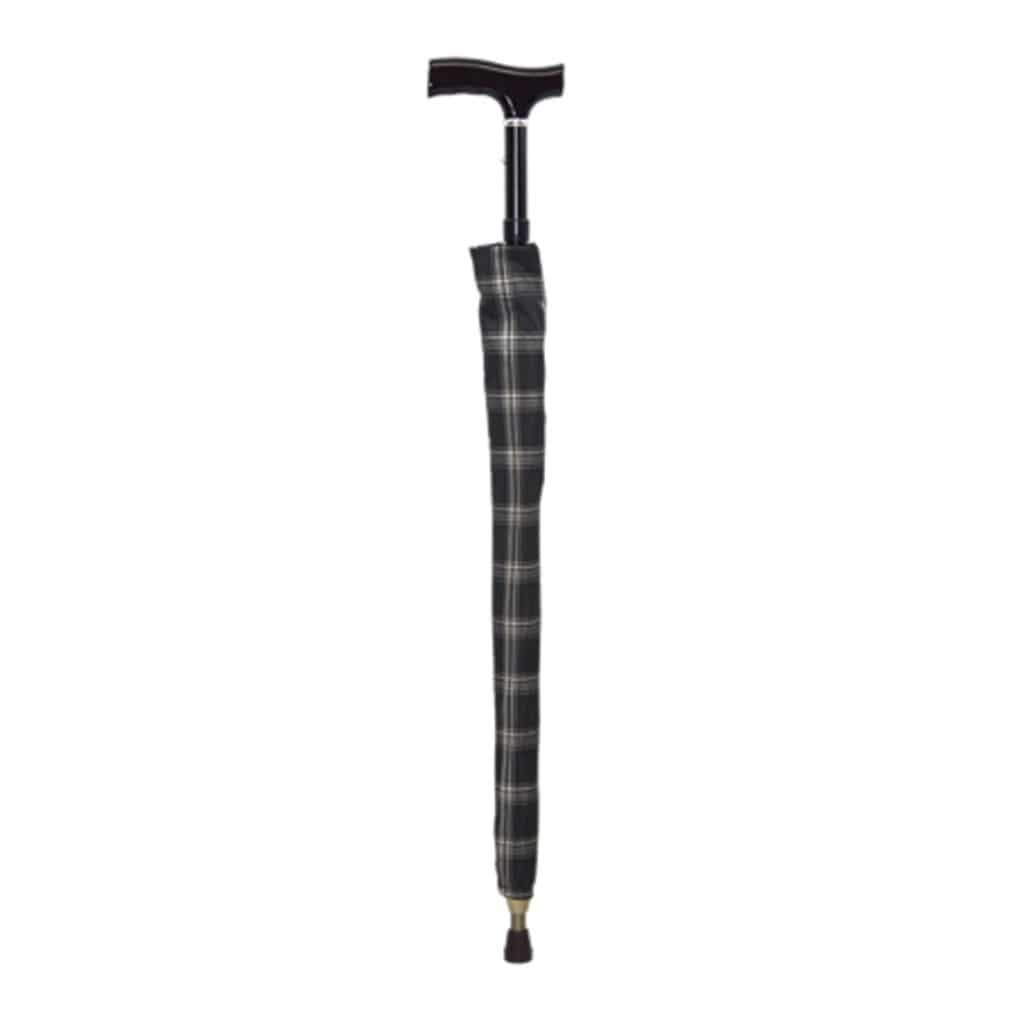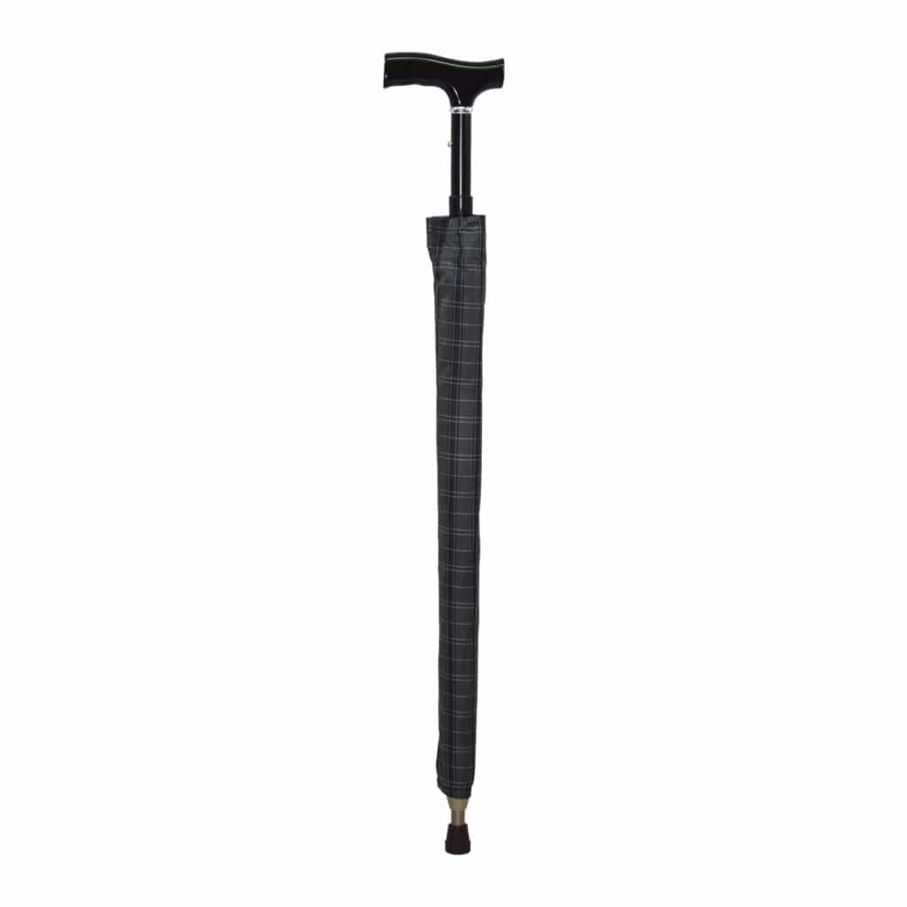 Es un modelo de bastón diferente a los habituales debido a su utilidad dos en uno: bastón y paraguas.