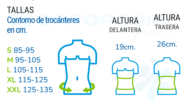 Ortesis lumbosacra alta que ofrece una sujeción excepcional, diseñada para brindar una estabilización avanzada y un potente efecto deslordosador en casos de patologías lumbares severas.