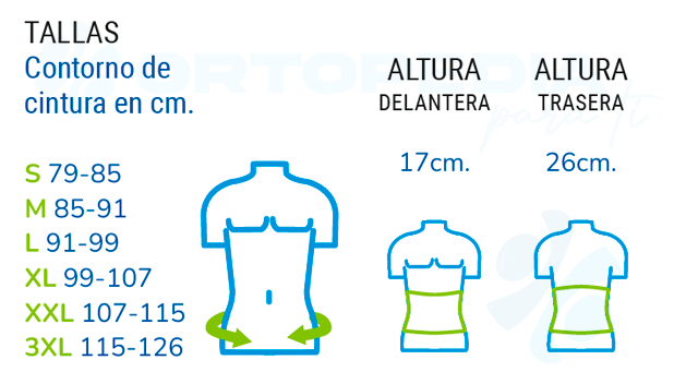 Gracias a su amplia zona de cierre con velcro, se adapta fácilmente al contorno del abdomen y a los cambios de volumen a lo largo del día.