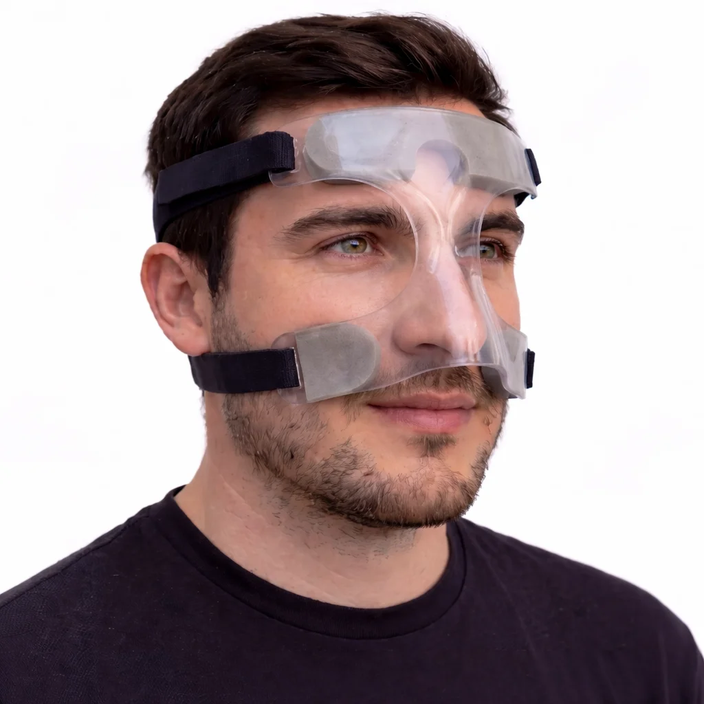 Máscara de protección facial transparente, perfecta para quienes desean volver a practicar deportes después de haber sufrido lesiones en la cara.
