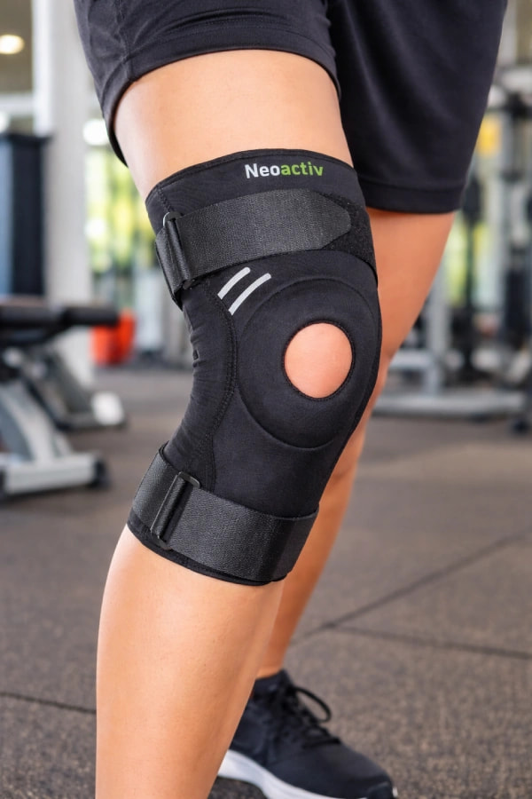 Modelo de rodillera estabilizadora de neopreno fabricada en un tejido sanitario con aislante térmico.