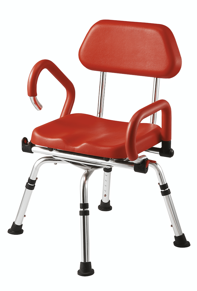 Silla de baño giratoria que ayuda al paciente a cambiar la posición del asiento muy fácilmente sin tener que realizar ningún tipo de esfuerzo.
